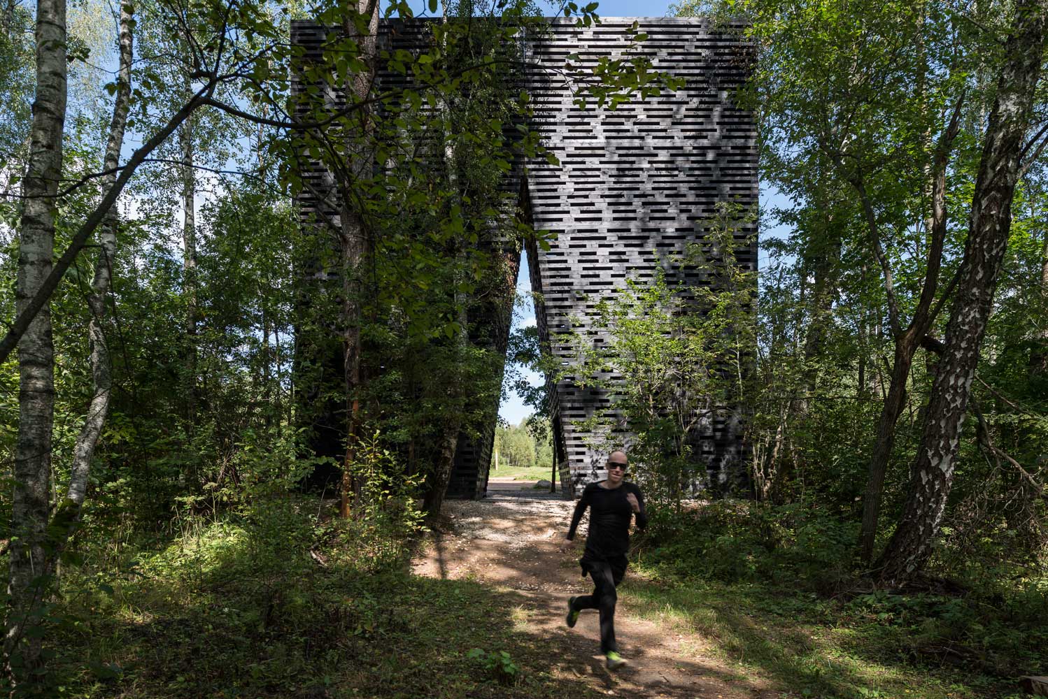 From the architect. ARC is an architectural and spatial research; it is built on the border between forest and field. It’s a hybrid that performs several functions: a portal, a triumphal arch, an observation deck, a bar, and a well.