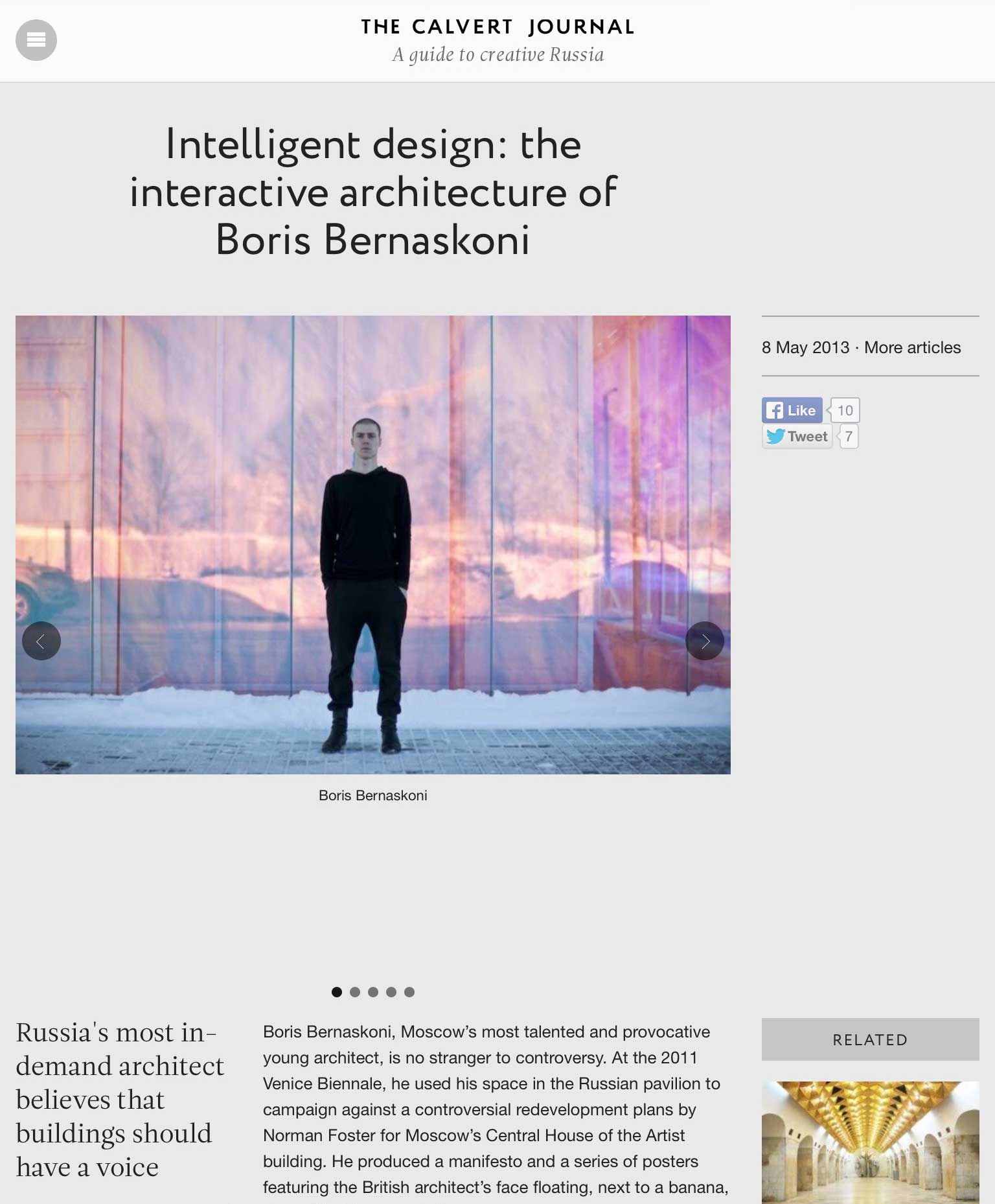 Boris Bernaskoni, Moscow’s most talented and provocative young architect, is no stranger to controversy. At the 2011 Venice Biennale, he used his space in the Russian pavilion to campaign against a controversial redevelopment plans by Norman Foster for Moscow’s Central House of the Artist building. He produced a manifesto and a series of posters featuring the British architect’s face floating, next to a banana, above the Moscow skyline.