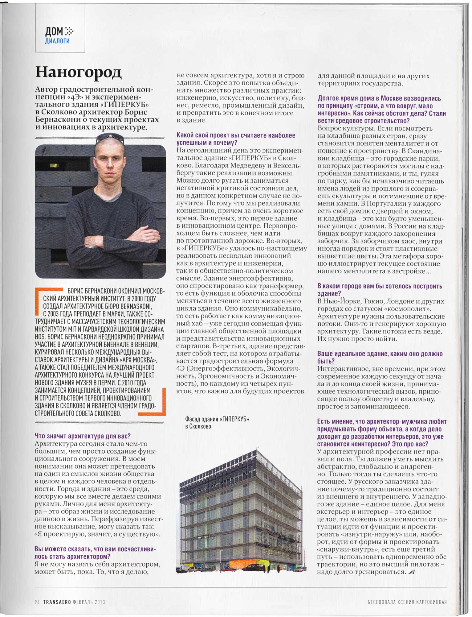 Автор градостроительной концепции «4Э» и экспериментального здания ГИПЕРКУБ в Сколково архитектор Борис Бернаскони о текущих проектах и инновациях в архитектуре.